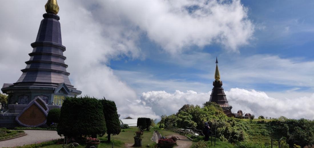 Chiang-Mai selbst hat etwa 135.000 Einwohner, ist nach Bangkok die zweitgrößte Stadt in Thailand und bietet einen spannenden Kontrast aus traditionellem Thailand und einer modernen Touristenstadt. Es gibt über 300 Tempel, alte und neue Stadtkerne und eine schöne Landschaft um Chiang-Mai herum zu bestaunen. Lukas und Markus von unserem Verein sind bereits vor einigen Tagen nach Chiang-Mai gereist und haben u.a. die höchsten Berg Thailands (den Doi Inthanon, ca. 2500m) besucht. Auf dem Berg wurden zum 60. Geburtstag für König und Königen in den Jahren 1987 und 1992 zwei beeindruckende Tempel errichtet.