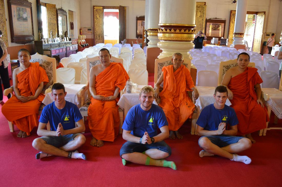 Schließlich landeten wir mit einem neugeborenen Roboter im etwas kühleren (ca. 25° C) Chiang Mai, dem Austragungsort des Weltfinales. Dort stand ein Ausflug mit der gesamten deutschen Delegation, bestehend aus 14 Teams aus verschiedenen Kategorien auf dem Plan. Die Zeit eignete sich gut, um die anderen Teams näher kennenzulernen, neue Kontakte zu knüpfen und alte Kontakte aufzufri-schen. Der Teamausflug stellte ein tolles Erlebnis und eine schöne Einstimmung auf den Wettbewerb dar.