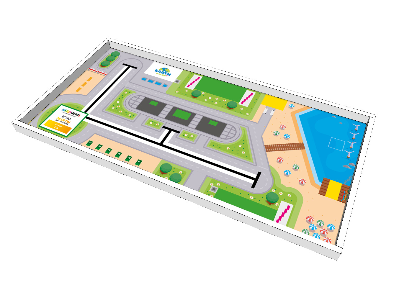 Hier wird lediglich die Spielfeldmatte (PVC-Matte in den Maßen 236,2 cm x 114,3 cm) mit entsprechendem Aufdruck bestellt. Die Spielfeldmatten wurden bei einem oder mehreren Wettbewerben verwendet und weisen daher Gebrauchsspuren (und ggf.Farbabweichungen auf.
